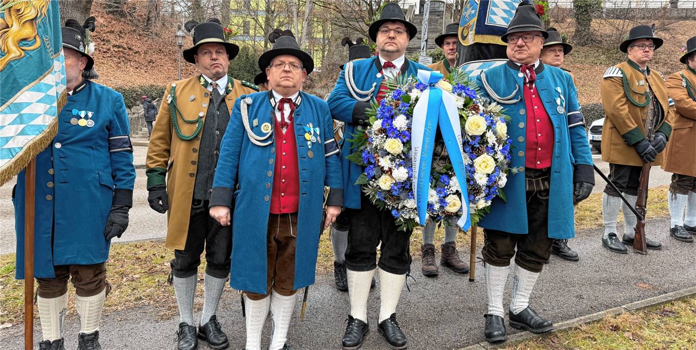 Gebirgsschützen erinnern mit einer Kranzniederlegung an die Gefallenen vor den Toren Münchens